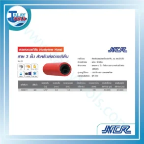 สีเเลผิวสาย : เเดง (สำหรับอะเซทิลีน) – ดำ ( สำหรับออกซิเจน ) ผิวเรียบ