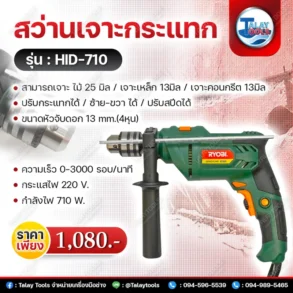 สว่านเจาะกระแทก 13mm. RYOBI HID-710 (710W.) หัวสว่านขนาด 4หุน JAPAN