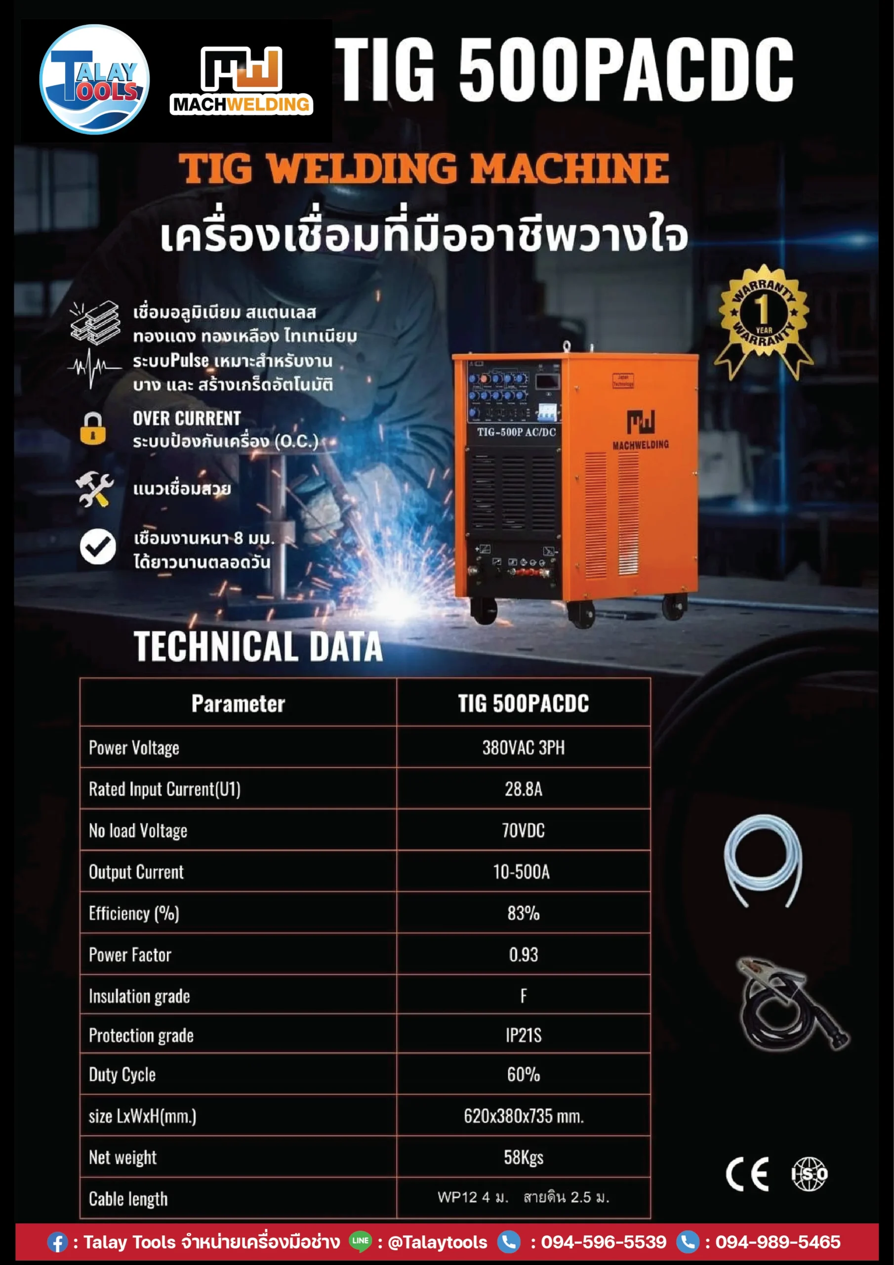 เครื่องเชื่อมไฟฟ้า MACH WELDING รุ่น TIG500P AC/DC