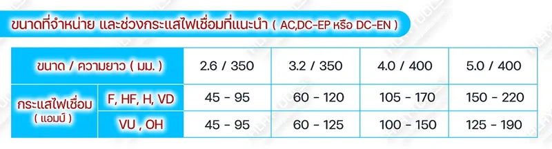 - ให้การอาร์คที่รุนแรง และนิ่งเรียบทำให้สามารถใช้เชื่อมได้ดีมากในท่าตั้ง-ลากลง ผิวรอยเชื่อมที่ได้มีความเรียบสวยงามเป็นมันวาว