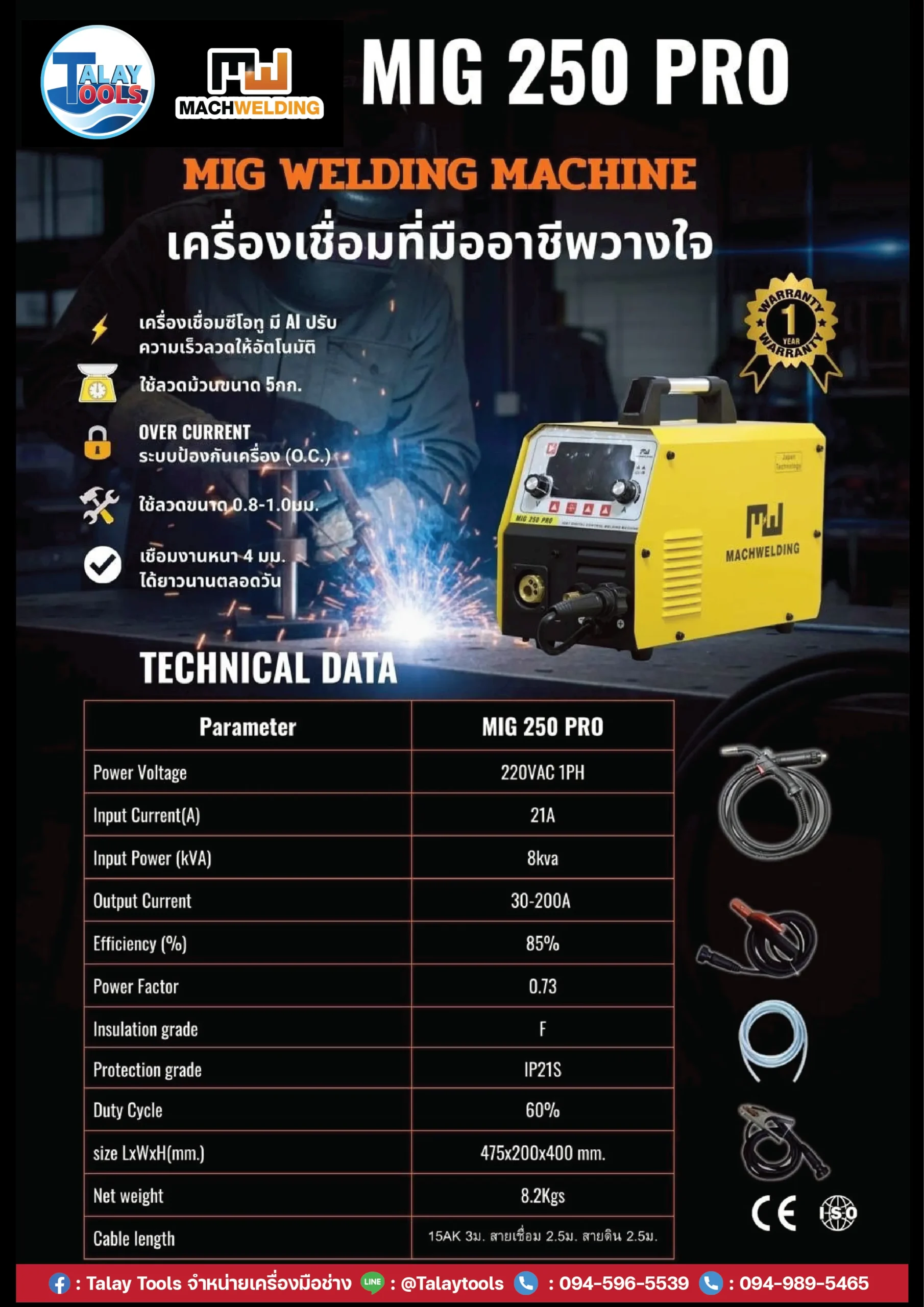 เครื่องเชื่อมไฟฟ้า MACH WELDING รุ่น SMART MIG PRO 250