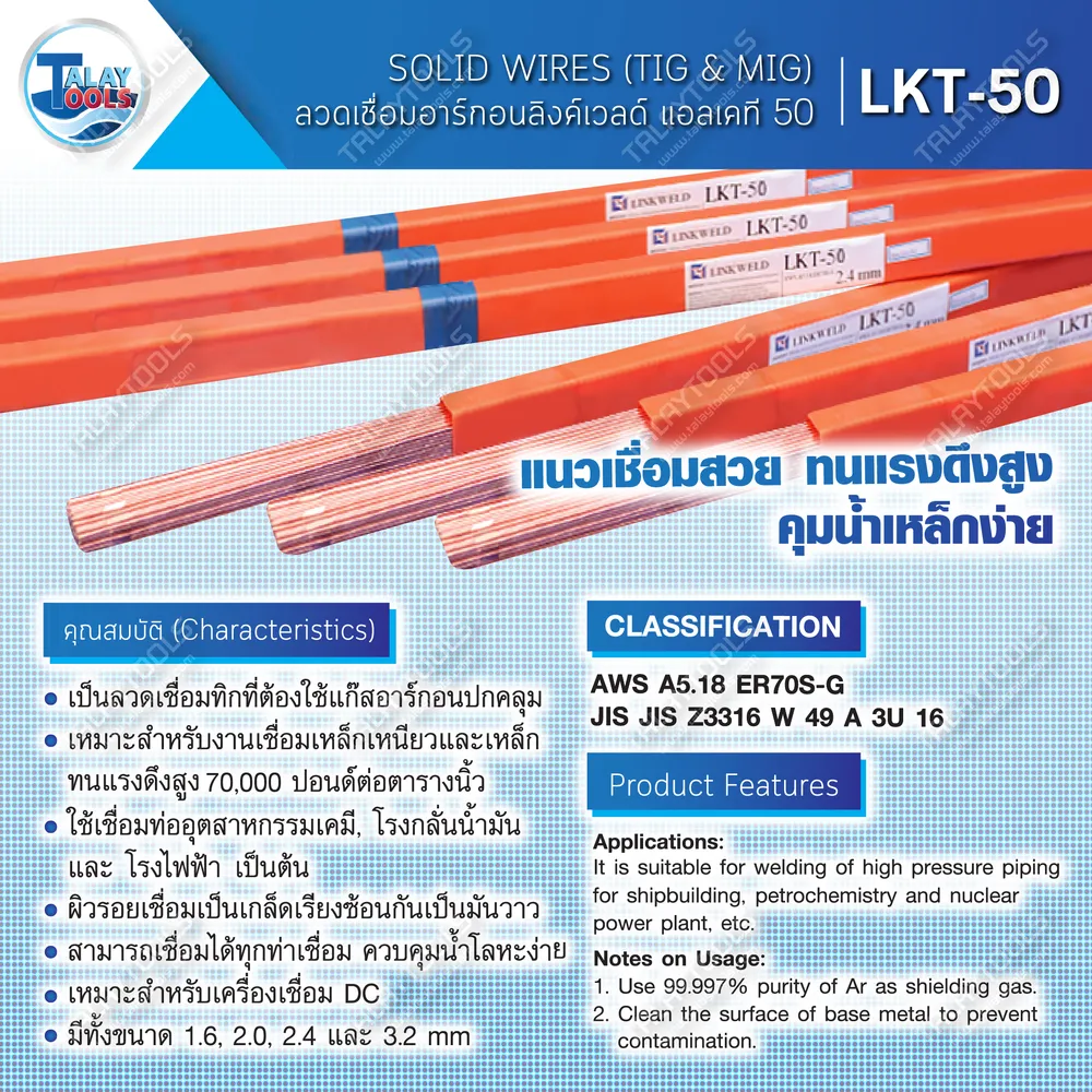 ลวดเชื่อมอาร์กอนเหล็ก (TIG) LINKWELD LKT-50 4.0 มม. ม้วนละ 5 กก.