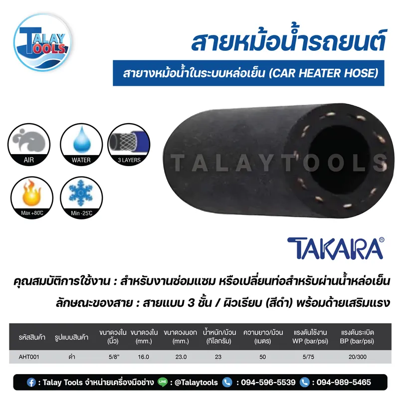 TAKARA AHT-001 สายหม้อน้ำร้อนในรถยนต์ – ระบบน้ำหล่อเย็น 5/8″ (50m)